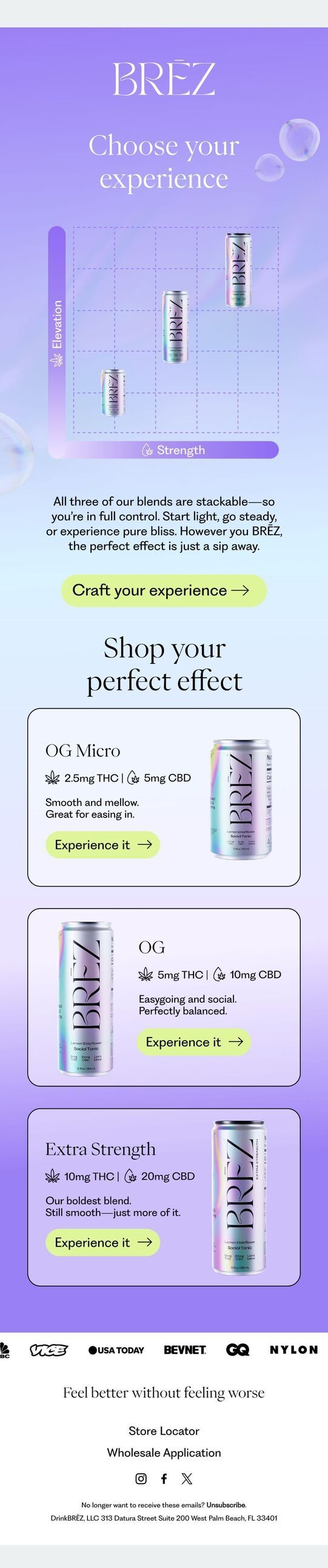 BREZ turned product selection into a visual experience rather than a boring list. They stripped away everything except what drives decisions: potency, effects, and clear benefits. For your emails: visualize choices, simplify decision-making, keep copy ultra-short, and always address the main objection your customers have. Oh, and press logos still work, use them.